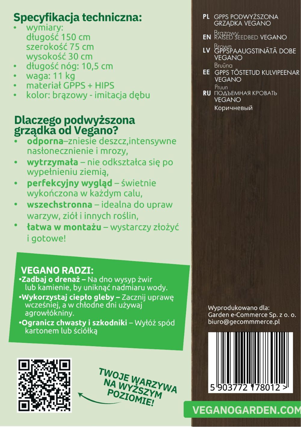 Warzywniak - podwyższona grządka - brąz GPPS - Vegano - 150 x 75 x 30 cm