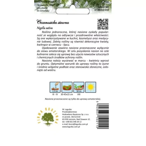 Czarnuszka siewna 1 g - nasiona W. Legutko