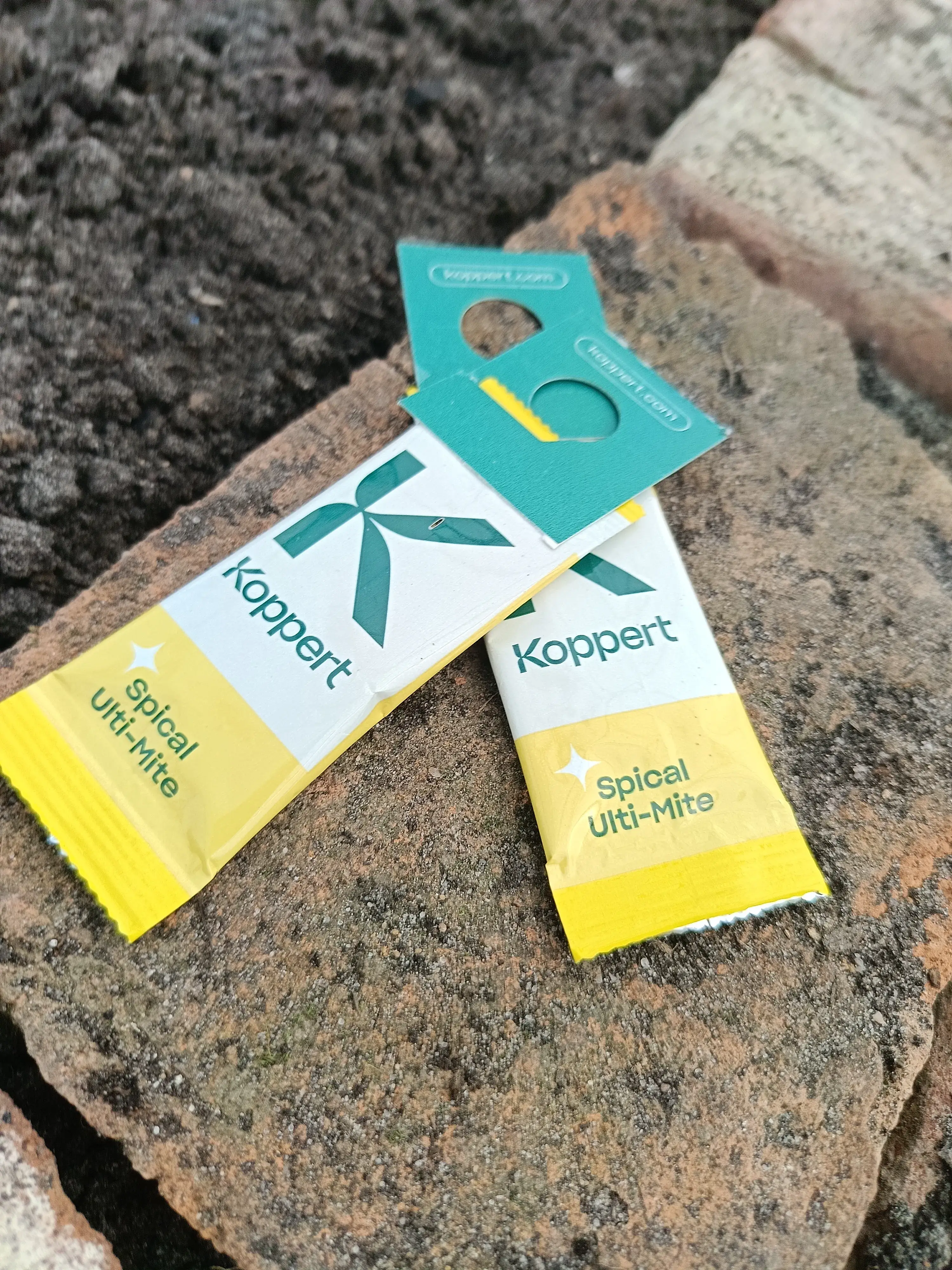 Opakowanie zawiera 20 w pełni biodegradowalnych saszetek. W każdej znajduje się 100 drapieżnych osobników Neoseiulus californicus wymieszanych z otrębami i roztoczem pokarmowym.