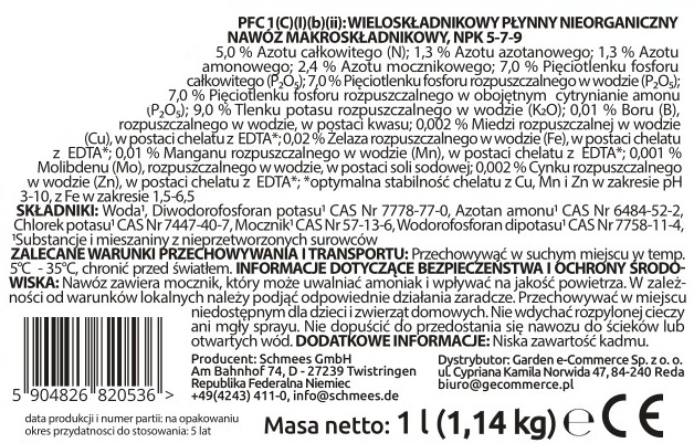 - wysokiej jakości płynny nawóz z 9 % zawartością potasu opracowany specjalnie do roślin kwitnących, które wymagają dodatkowego wsparcia w okresie wzrostu i tworzenia pąków