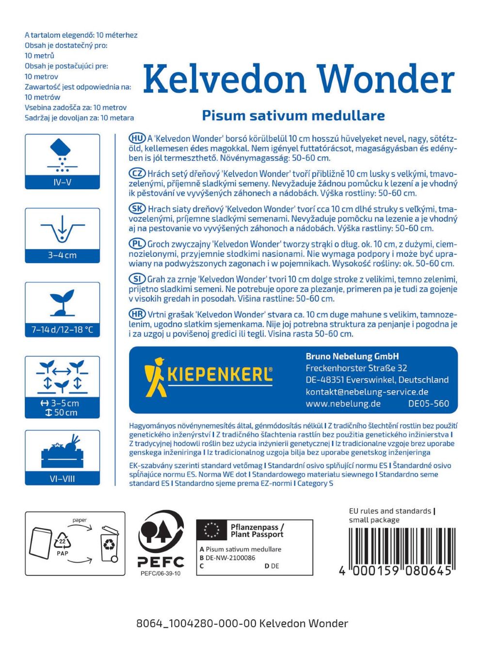 Odmiana ta daje obfity plon prostych, intensywnie zielonych strąków, wypełnionych dużymi, słodkimi i wyjątkowo delikatnymi nasionami. Groch Kelvedon Wonder dojrzewa wcześnie i owocuje równomiernie, co pozwala cieszyć się świeżymi, aromatycznymi strączkami przez dłuższy okres. Roślina jest odporna na choroby, niewymagająca i łatwa w uprawie, dlatego polecana jest także początkującym ogrodnikom.