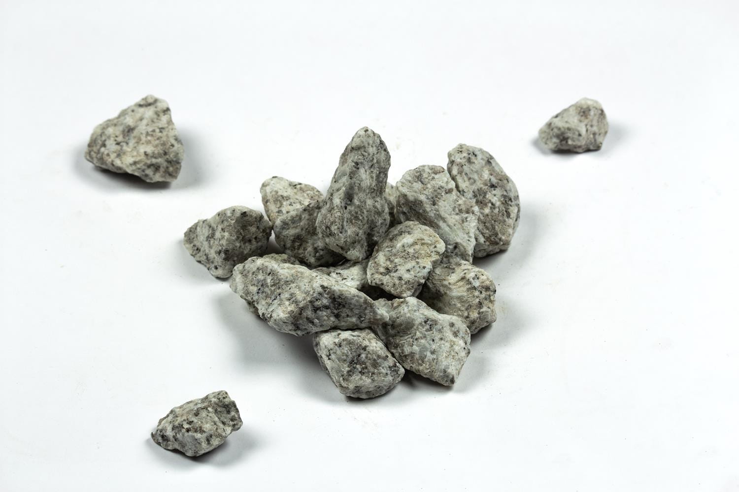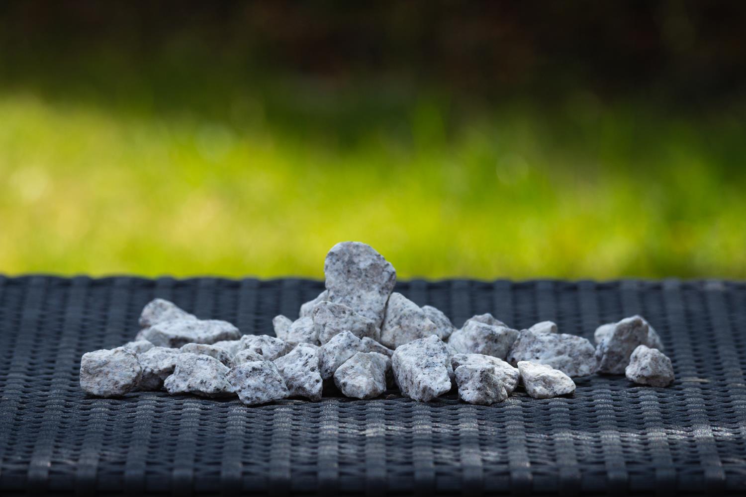 Ozdobny grys „Dalmatyńczyk” to materiał pochodzenia naturalnego, powstały w wyniku kruszenia kamienia – w tym przypadku granitu.