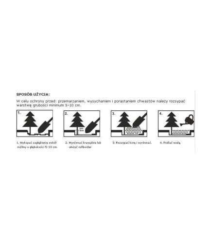 Korę możesz rozłożyć bezpośrednio na ziemi lub np. na agrowłókninie lub kartonach co spowolni jej rozkład i dodatkowo będzie wspomagać zabezpieczenie gleby przed chwastami i wysychaniem