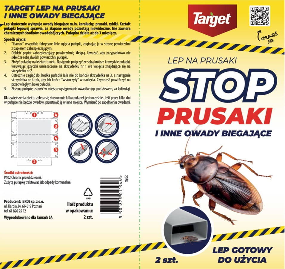 Pułapka lepowa na owady biegające to praktyczne i skuteczne rozwiązanie do eliminacji szkodników, takich jak prusaki, karaluchy, rybiki cukrowe oraz inne owady biegające. Produkt charakteryzuje się wysokim poziomem bezpieczeństwa, łatwością użytkowania i długotrwałym działaniem aż do 3 miesięcy.