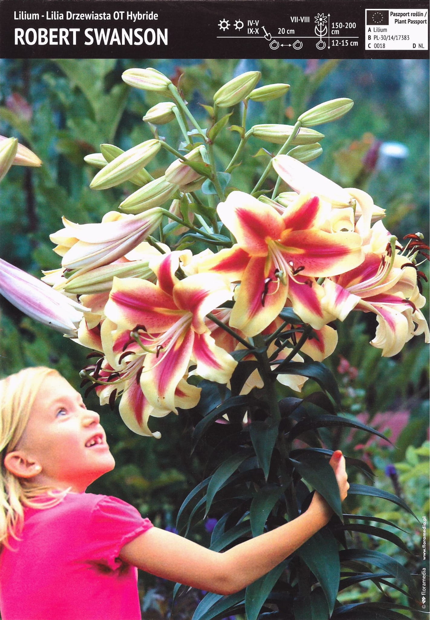 Cebule lilii drzewiastych OT z roku na rok po posadzeniu obficiej i intensywniej kwitną zdobiąc ogród olbrzymimi pięknymi kwiatostanami. Lilie drzewiaste Robert Swanson osiągają bardzo duże wysokości aby uniknąć złamania należy podpierać je palikami.