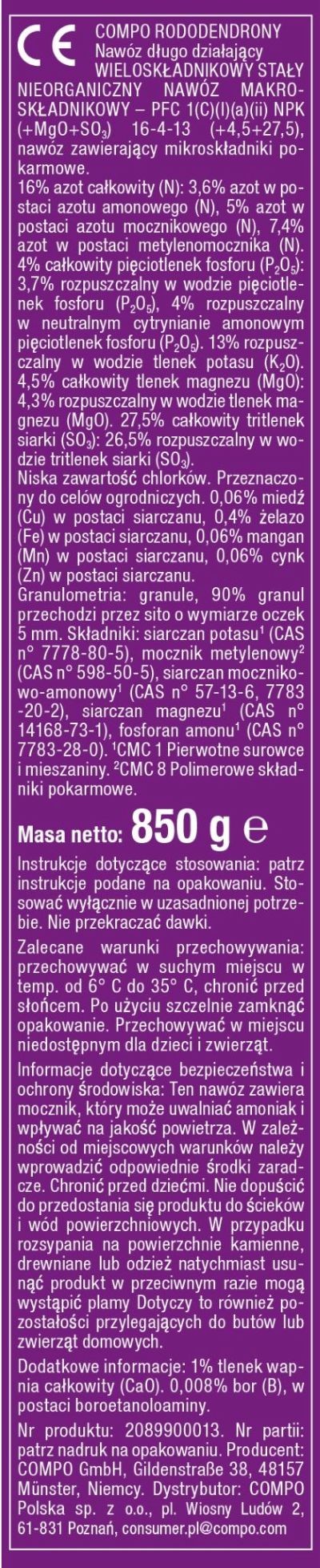 - Rododendrony - rośliny już rosnące - 100g / m2 przed kwitnieniem
