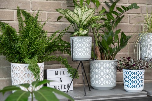 - składa się z dwóch części - ażurowej osłonki, pełniącej również funkcję podstawki oraz kolorowego wkładu z otworami pozwalającymi na odpływ nadmiaru wody. Takie połączenie daje niezwykły efekt gry świateł i cieni.