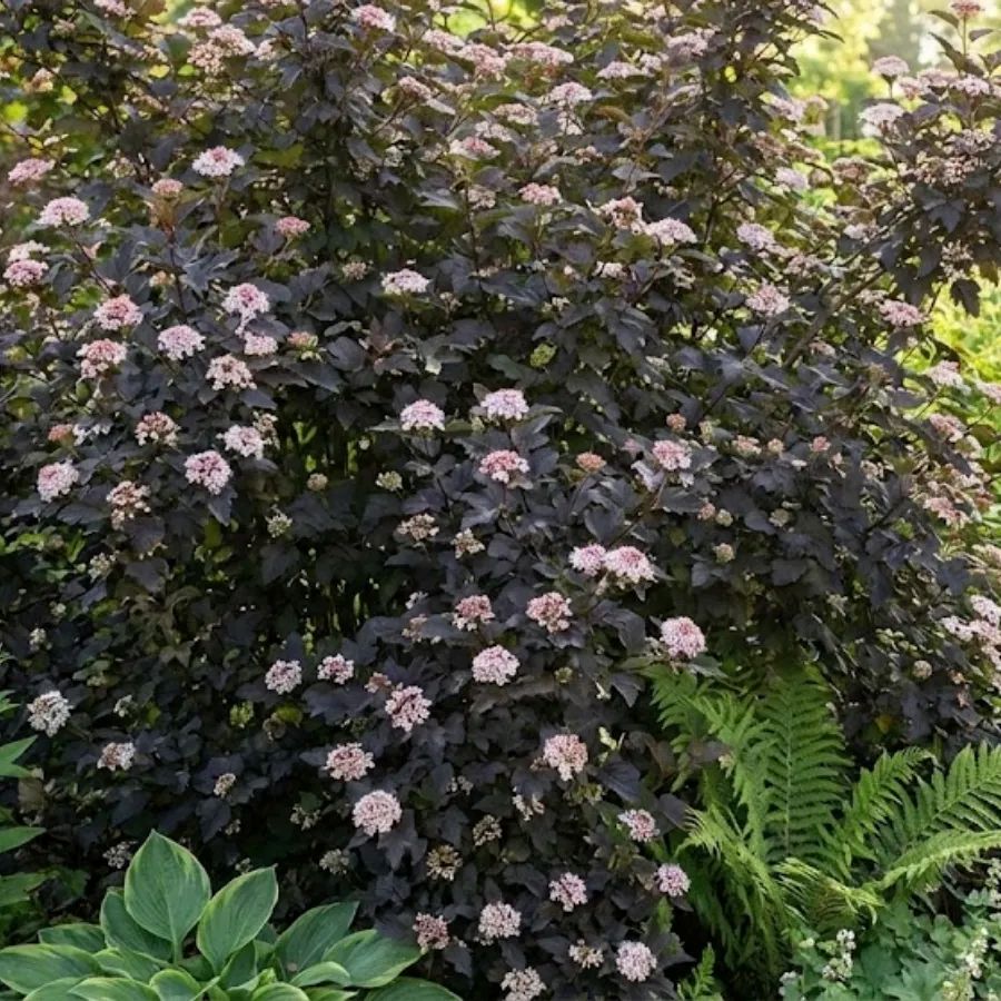 - niezwykle dekoracyjny krzew liściasty, który przyciąga wzrok swoim intensywnie ciemnym, niemal bordowym ulistnieniem.