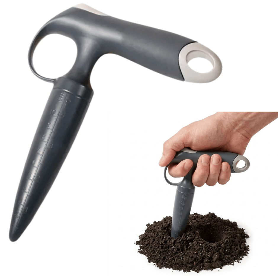 Praktyczne narzędzie ogrodnicze, które ułatwia wysadzanie cebulek kwiatowych, sadzonek warzyw oraz większych nasion. Dzięki lekkiej konstrukcji i wygodnemu uchwytowi pozwala szybko oraz precyzyjnie przygotować dołki o odpowiedniej głębokości, co sprzyja prawidłowemu wzrostowi roślin.