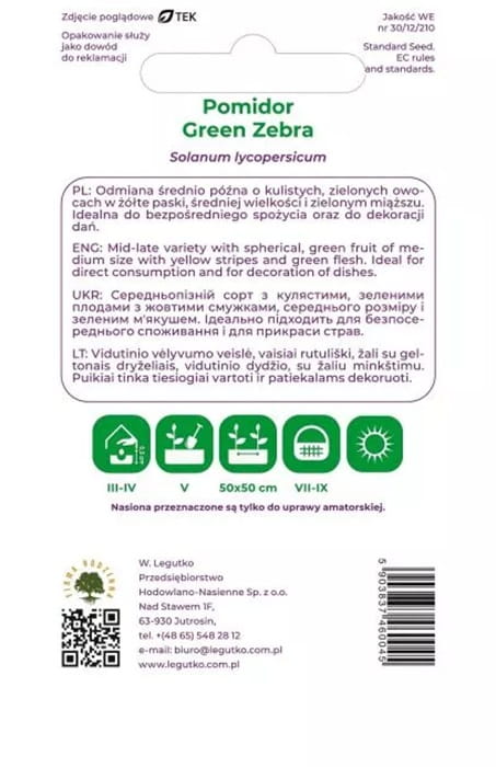 Nasiona pomidorów W. Legutko - 'Green Zebra'