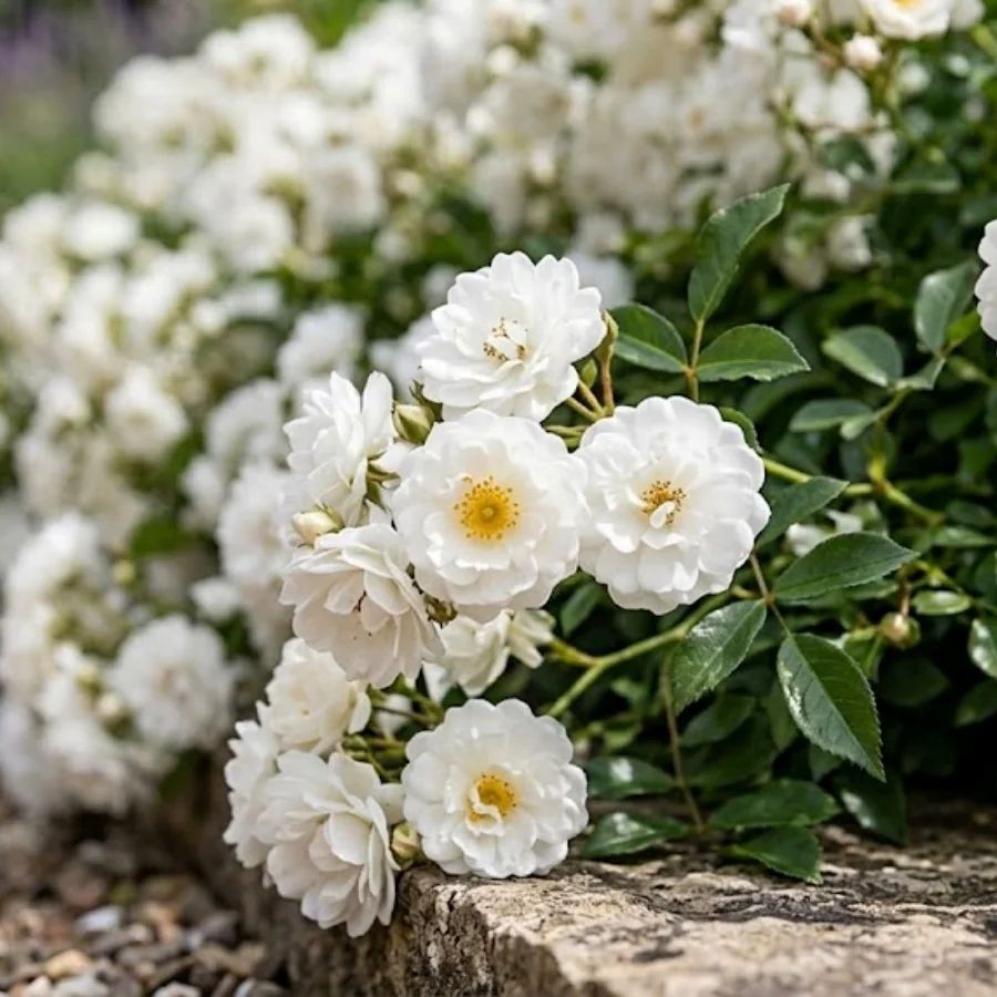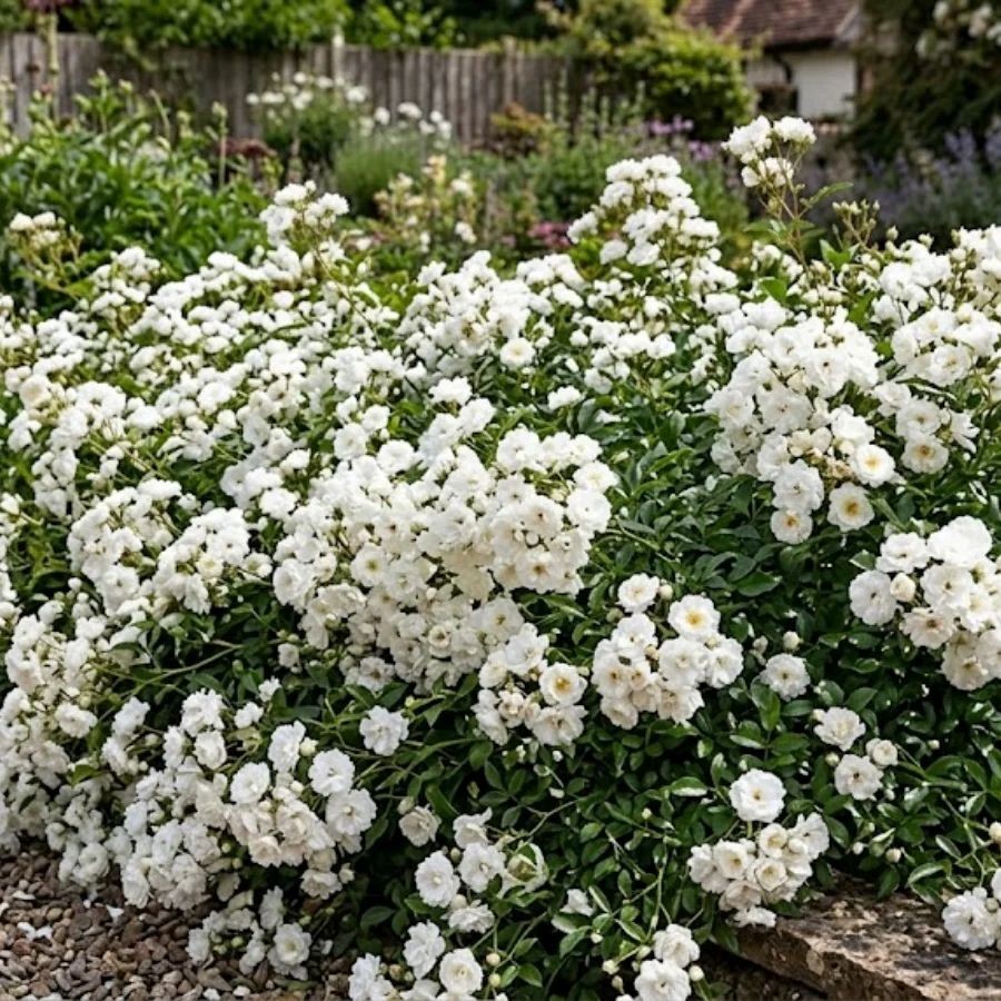 Róża Okrywowa Biała The Fairy White to bardzo urokliwa odmiana okrywowa, która zachwyca swoją delikatnością i elegancją.Posiada drobne pełne kwiaty o białych płatkach. Kwitnie obficie i długo - od początku lata do pierwszych przymrozków. Krzew jest niski, ale rozłożysty, o przewieszających się pędach, dzięki czemu doskonale nadaje się do sadzenia w ogrodach, na skarpach czy w donicach. Jest bardzo odporna na choroby i niesprzyjające warunki pogodowe, dzięki czemu jest łatwa w pielęgnacji.