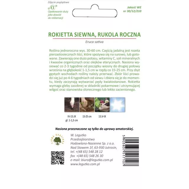 Rukola/rokietta siewna 0,5 g - nasiona W. Legutko