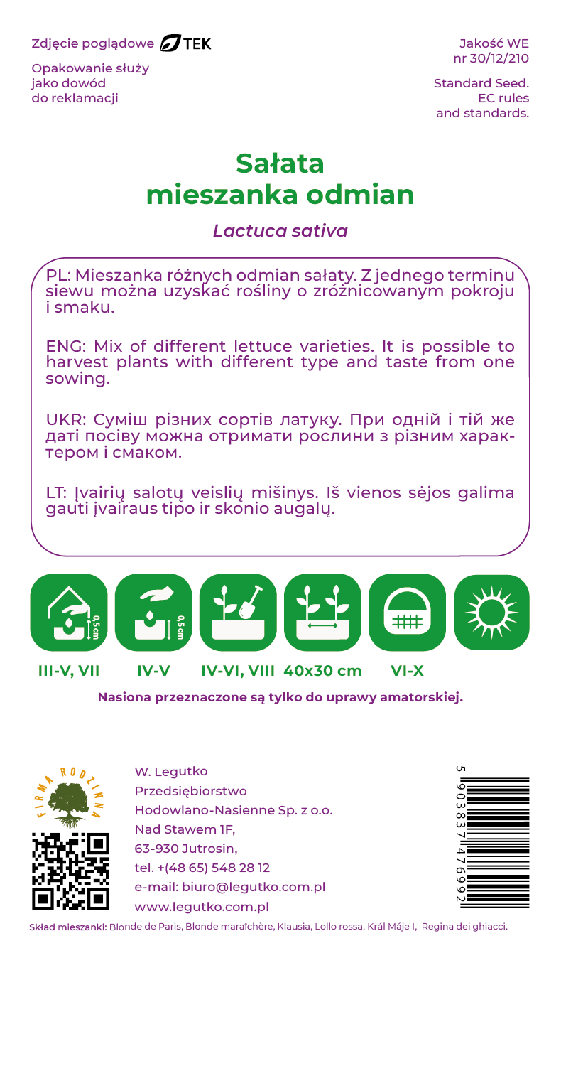 Sałata mieszanka odmian 1,5 g nasiona W. Legutko