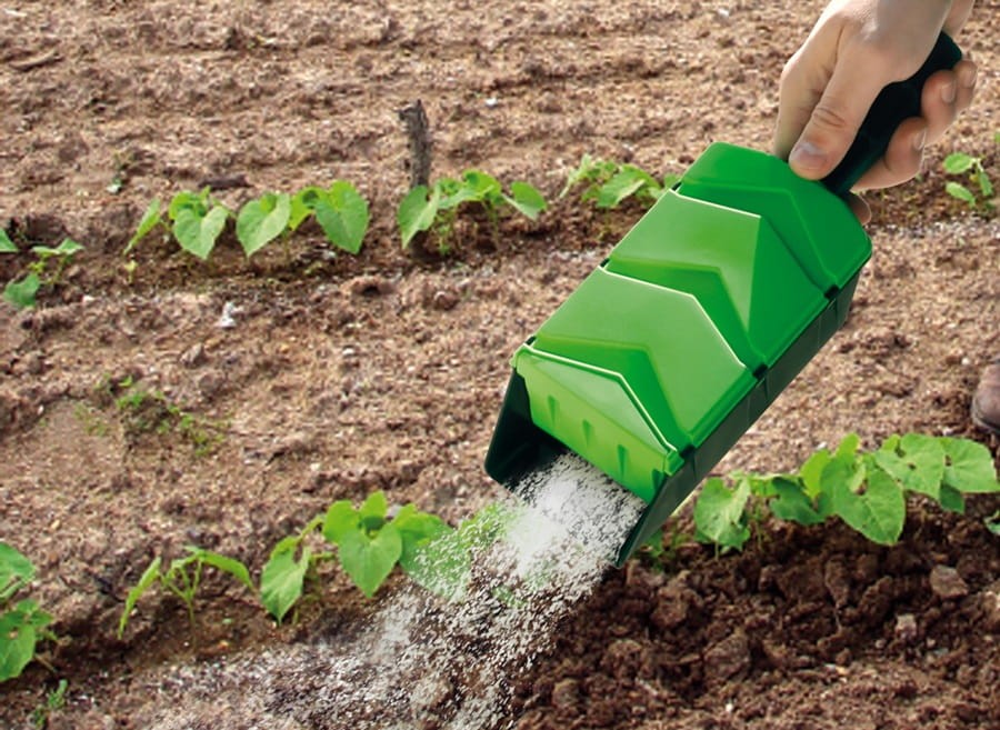 - lekkie i poręczne narzędzie do równomiernego rozsiewania nasion, nawozów granulowanych, piasku i soli drogowej.
