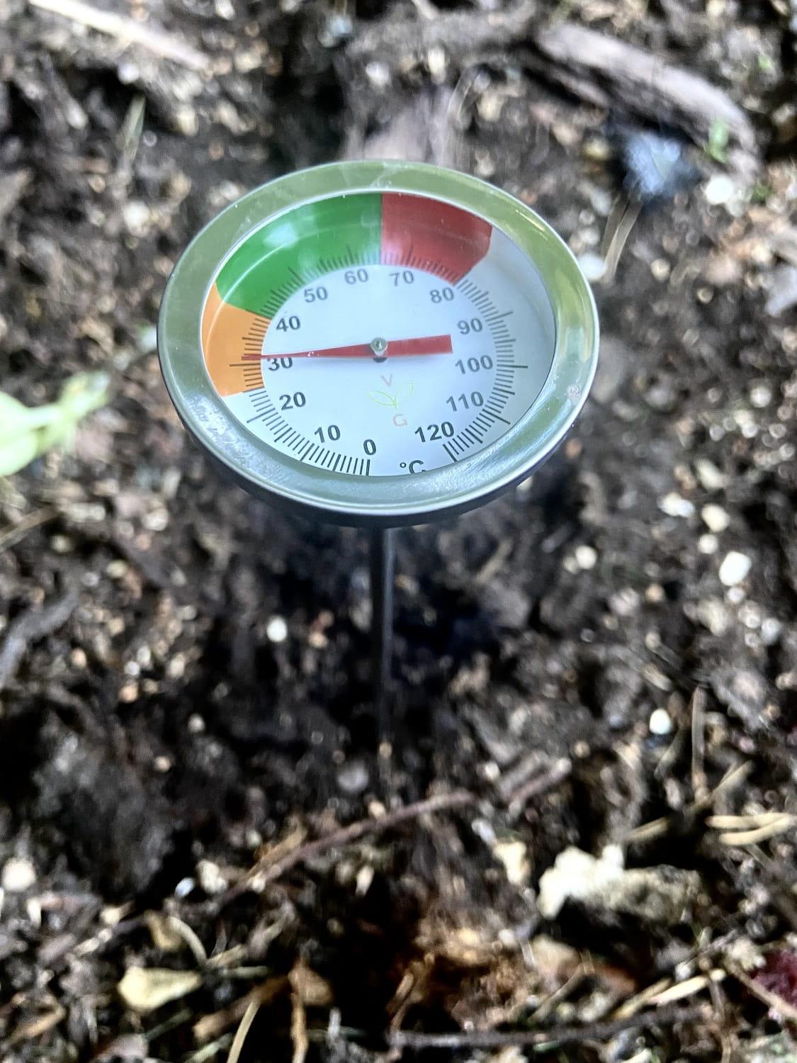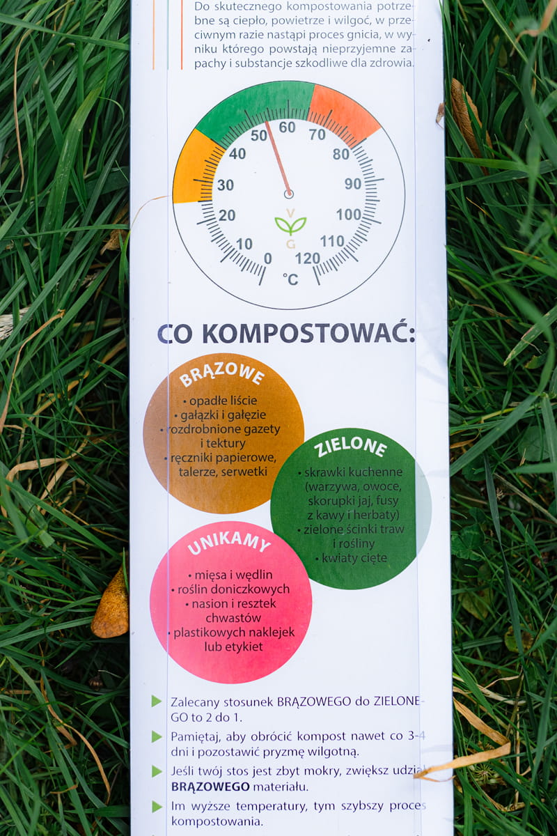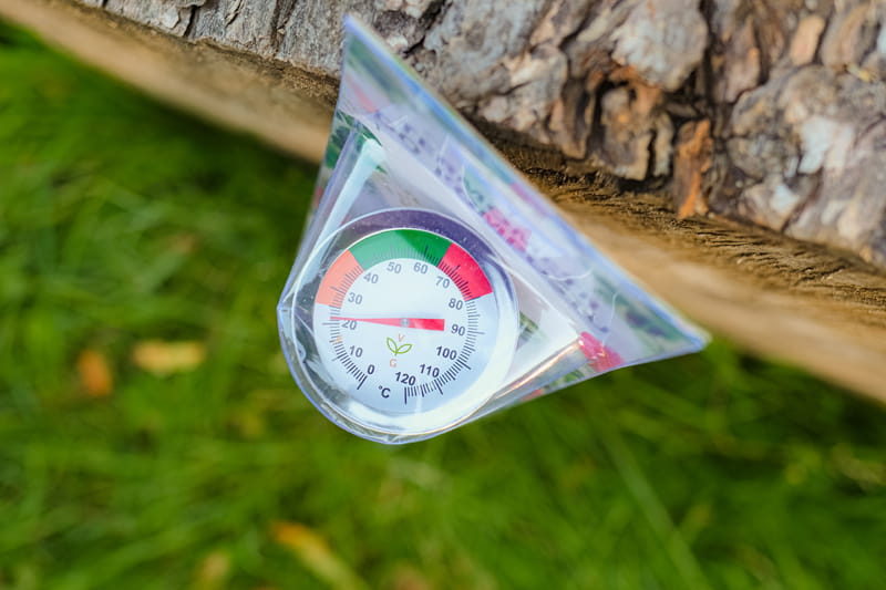 Temperatura kompostu ma wpływ na skuteczność kompostowania. Dzięki pomiarowi temperatury będziesz wiedzieć, kiedy podlać, obrócić, dodać więcej materiału do pryzmy kompostowej oraz kiedy kompost będzie gotowy do użycia.