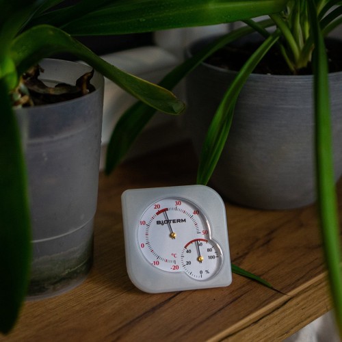 Precyzyjny termometr wewnętrzny z czytelną skalą oraz z higrometrem. Termometr ten ma szeroki zakres pomiaru temperatury (od - 20°C do + 50°C) oraz niską tolerancję błędu (do +/- 1°C). Wilgotność mierzona jest w skali od 0 do 100 % (tolerancja błędu: do ok. +/- 8% RH). Idealny do umieszczenia w pokoju na półce, dzięki wygodnej stopce do postawienia. Można go również powiesić na uchwycie zamontowanym z tyłu urządzenia.
