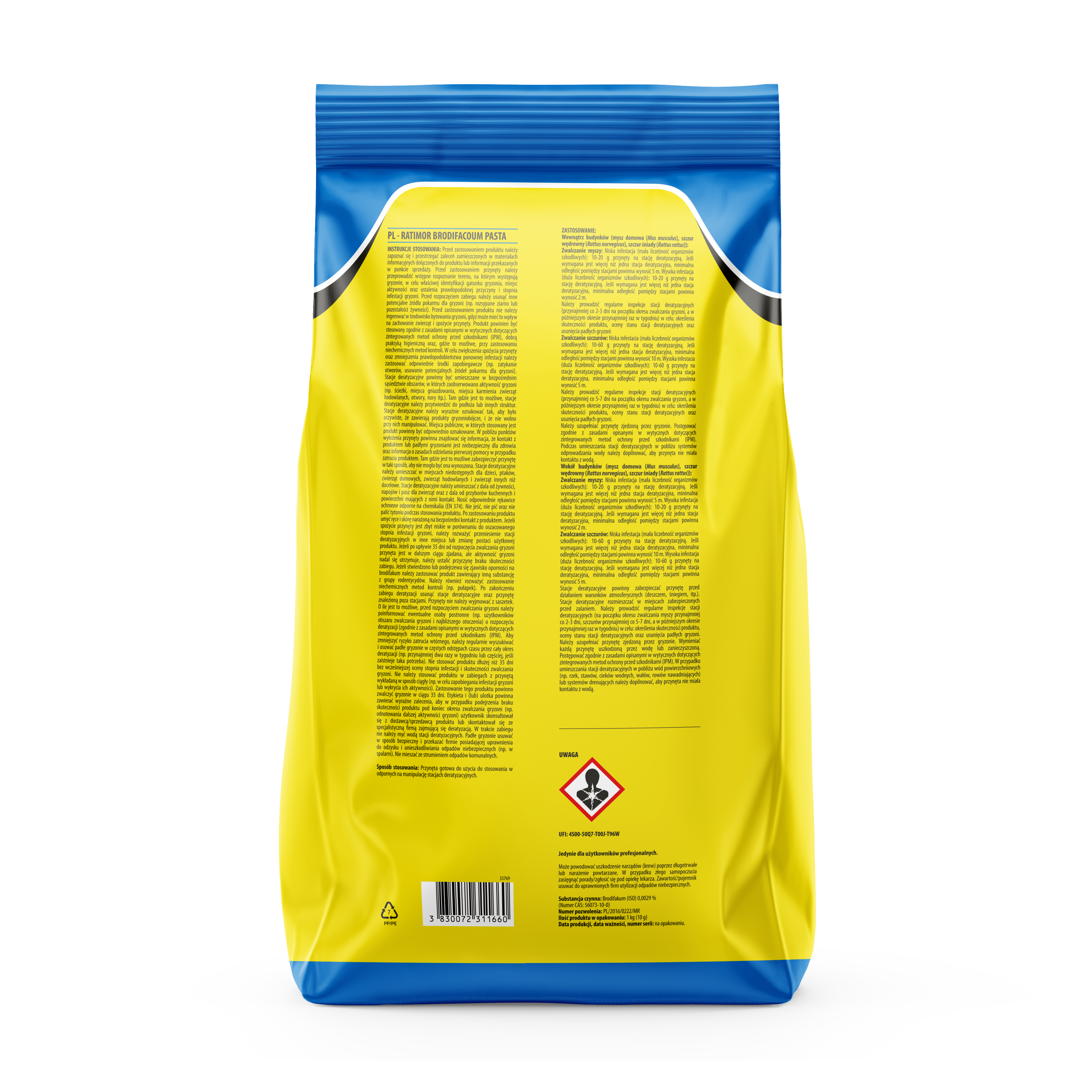 Profesjonalny, gotowy do użycia środek deratyzacyjny w formie miękkiej pasty, przeznaczony do skutecznego zwalczania myszy i szczurów wewnątrz i wokół budynków. Preparat zawiera brodifakum - preparat zapewniający skuteczność już przy pierwszym spożyciu przez gryzonia.