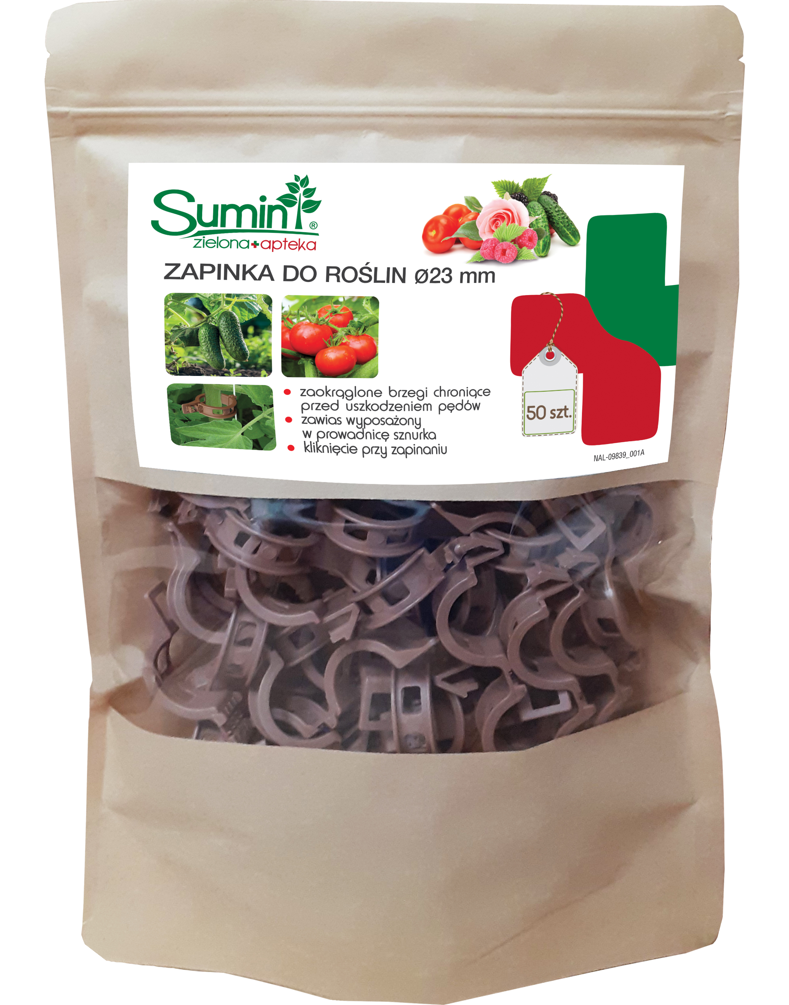 Zapinka do roślin firmy Sumin zabezpiecza pędy, zapewnia im stabilne, długotrwałe umocowanie.