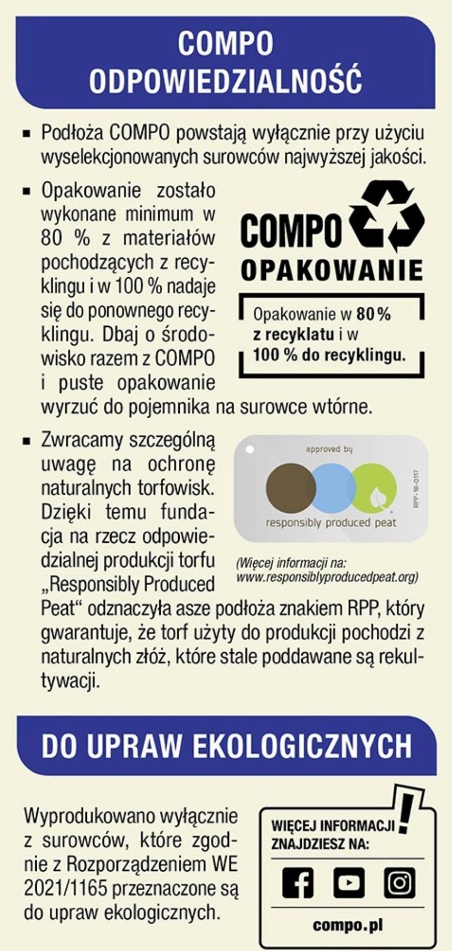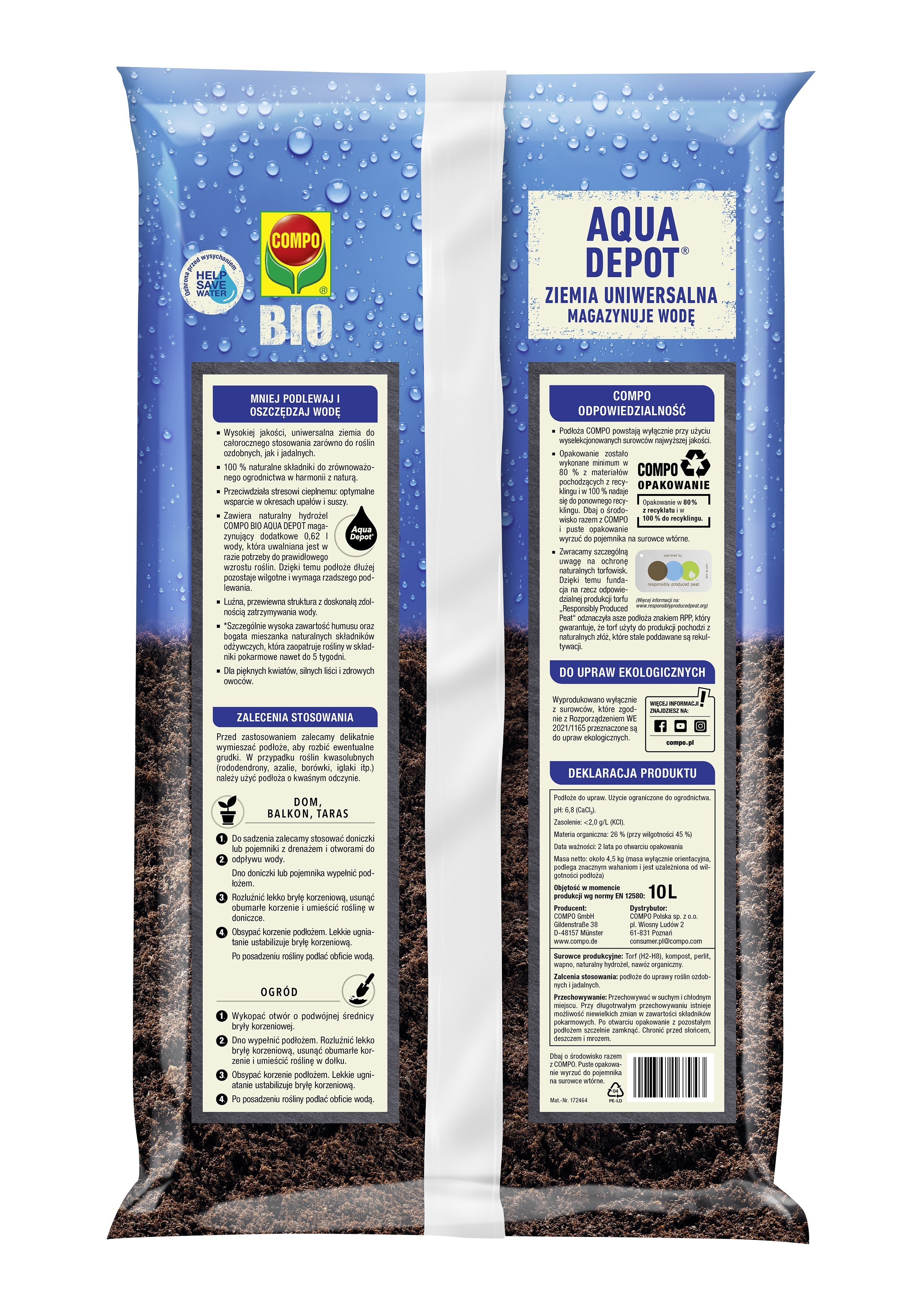 Bio Aqua Depot Ziemia uniwersalna marki Compo to ekologiczna, gotowa do użycia mieszanka do uprawy roślin w domu, ogrodzie i na balkonie.