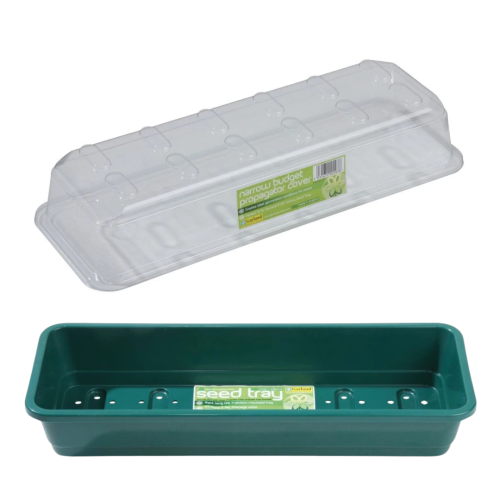 Zestaw do robienia rozsad: wąska pokrywka do tacy wysiewowej + wąska taca do wysiewu z otworami– 37x13,5 cm - Garland